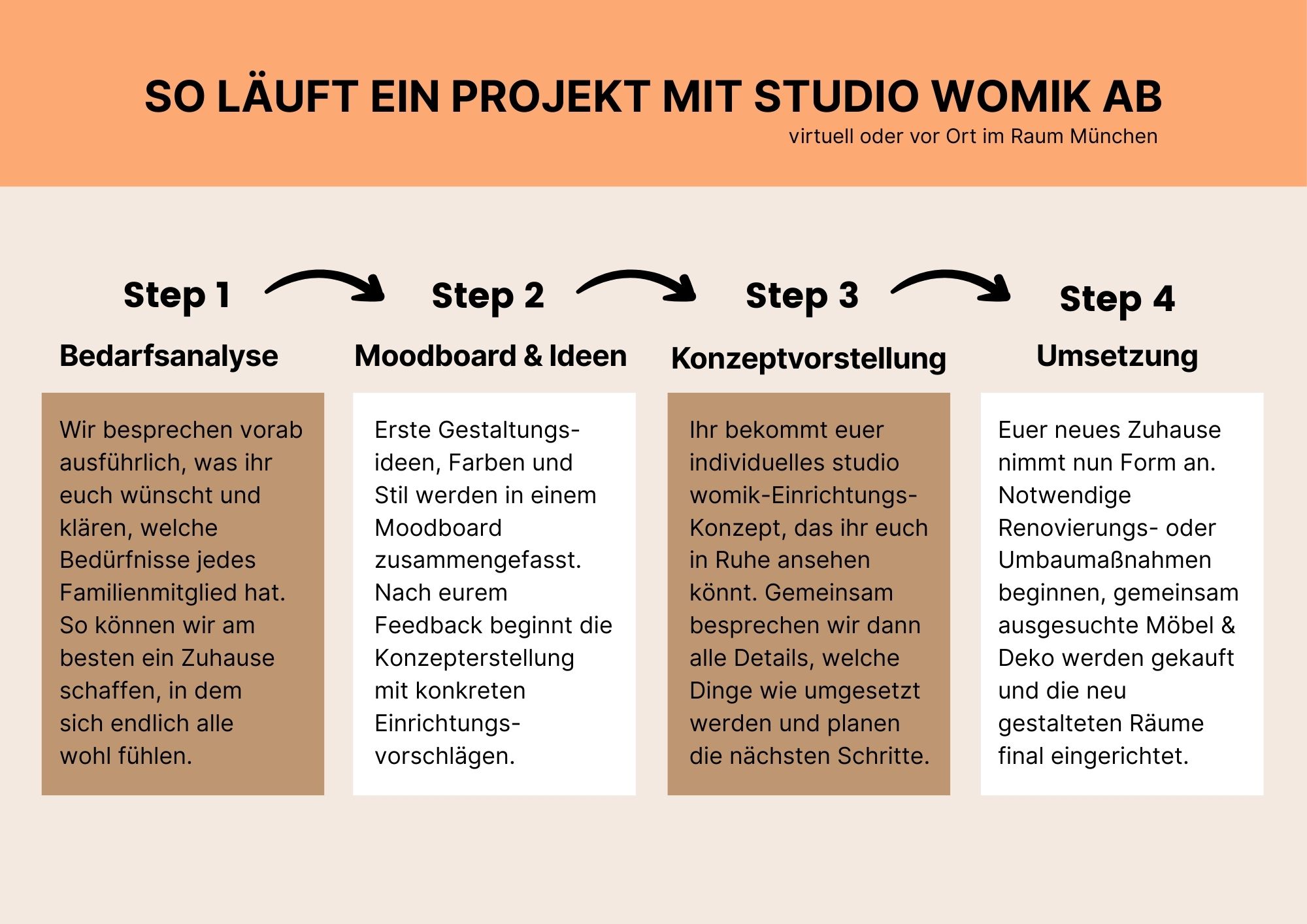 Du bist mit eurer Einrichtung nicht zufrieden und möchtest verstehen, worauf es bei der Raumgestaltung für Familien wirklich ankommt? In meinen studio womik-Coachings lernst du genau das. Anschließend kannst dein neues Wissen alleine anwenden und endlich ein Zuhause schaffen, wie ihr es euch wünscht.